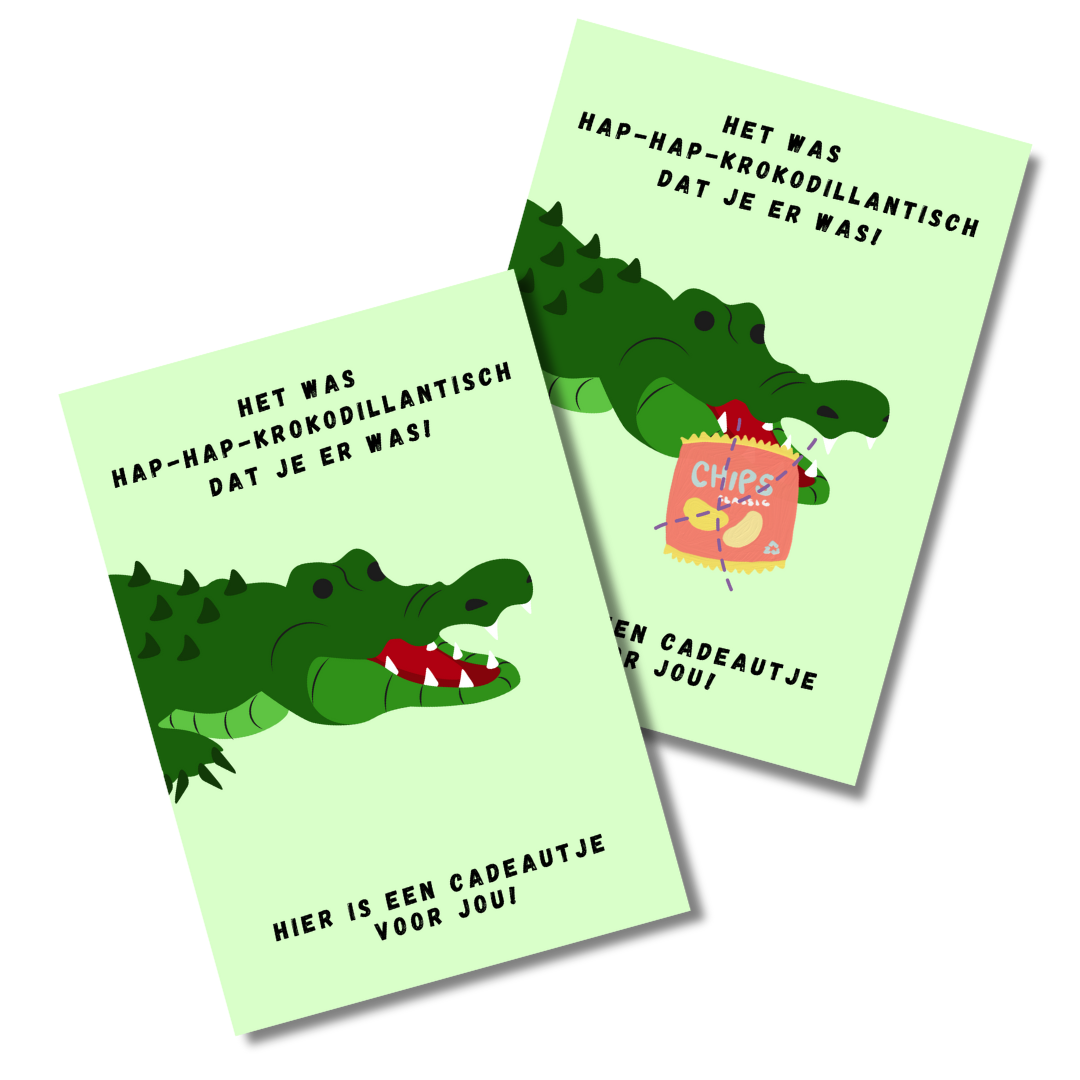 - Ruimte voor cadeautje: Maak de kaart compleet met een traktatie zoals een krokodillenbadspeeltje of iets lekkers (niet inbegrepen).